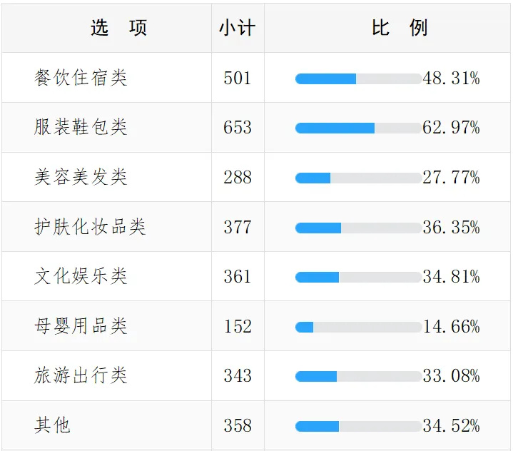 ●其他依次是文化娱乐类、其他类和旅游出行类。