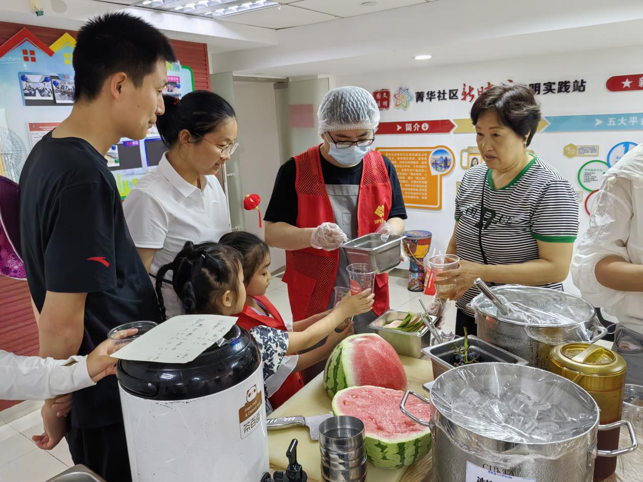 大暑将至,夏日的热浪滚滚而来,给城市的每一个角落带来了难耐的高温。近日,为切实关怀社区内一线工作人员的辛勤付出,苏州工业园区胜浦街道菁华社区组织辖区党员、五老志愿者以及胜浦小参谋等,举办了一场百场服务进社区之“送清凉 沁人心”夏日水果茶DIY活动,将亲手制作的水果茶送给社区内一线工作的保安、保洁、维修工程师、退役军人和新业态工作人员等,为他们送一份清凉,解一份暑热,传一份关爱。
