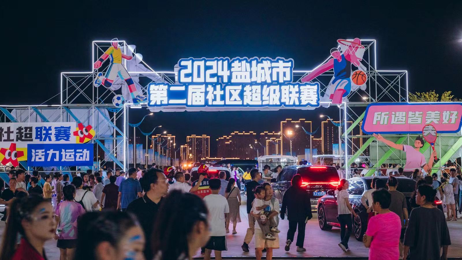 交汇点讯 夜幕低垂,灯光璀璨,7月27日晚,盐南青年体育公园沉浸在一片欢腾之中,“Fighting一夏·当燃热爱”——2024盐城市第二届社区超级联赛盛大开幕。这一夜,体育的激情与社区的活力在此汇聚,青春、拼搏与梦想的乐章也在此奏响。