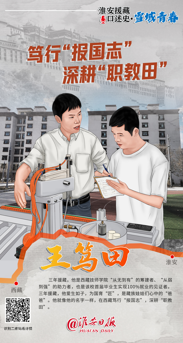 2019年5月,为响应中共中央、国务院“支持西藏发展技工教育,培养更多急需技能人才”号召,淮安技师学院决定选派优秀教师援藏。王笃田年富力强、专业对口,主动请缨。