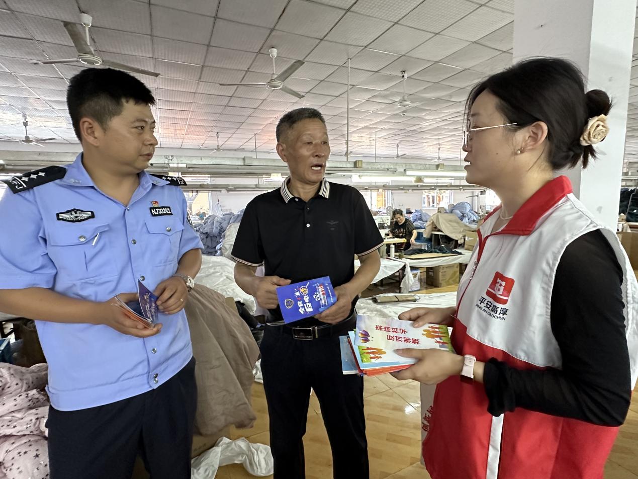 为切实增强企业员工识骗、防骗能力,压降电信网络诈骗发案率,积极营造良好的生活氛围,近日,高淳区固城街道平安办联合固城派出所深入辖区服装企业开展以“‘义’起来反诈”为主题的普法宣传活动。