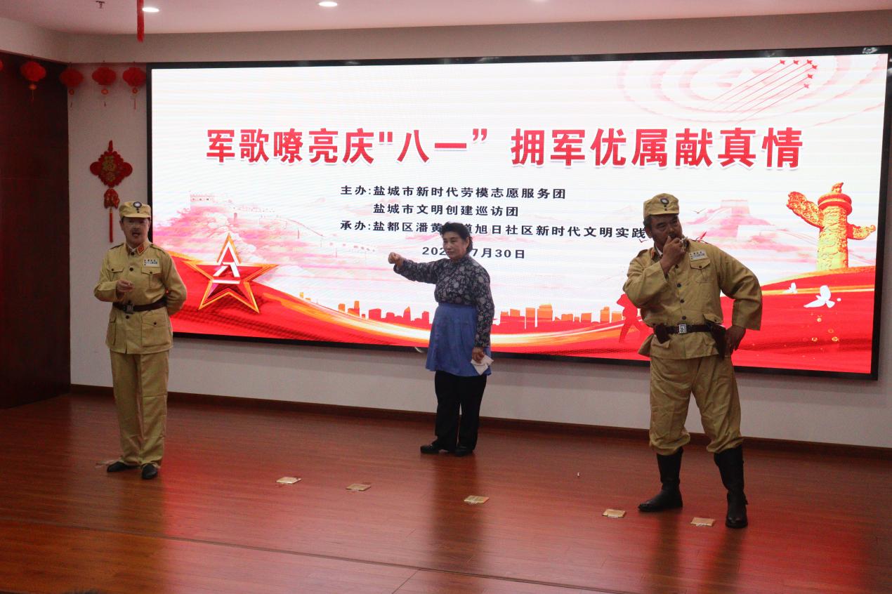 新华报业网讯 为庆祝中国人民解放军建军97周年,弘扬拥军优属光荣传统,推进国防教育,传播爱国主义精神,7月30日下午,由盐城市新时代劳模志愿服务团、盐城市文明创建巡访团主办的“军歌嘹亮庆八一,拥军优属献真情”社会实践志愿服务主题活动在盐城市盐都区潘黄街道旭日社区新时代文明实践站成功举行。