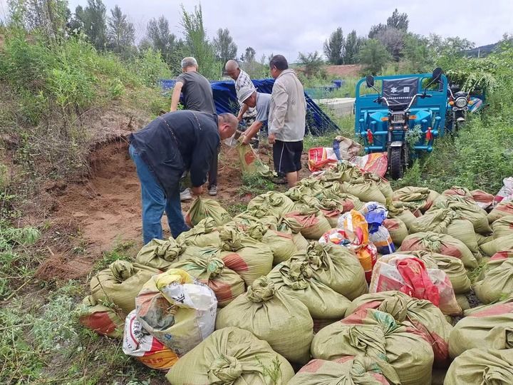 7月27日,辽宁省铁岭县平顶堡镇组织各村紧急装运沙袋,全镇共准备5000个沙袋迎战强降雨。新华社发