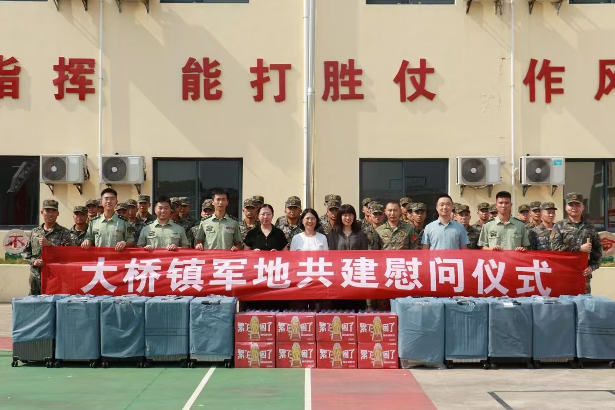 大桥镇领导一行来到驻地部队上海市总队执勤第七支队执勤一中队,走访慰问部队官兵,并送去了行李箱、饮料、除草机等慰问品,向部队官兵表示节日祝福,表达对人民子弟兵的关怀和军民一家亲的鱼水情谊。
