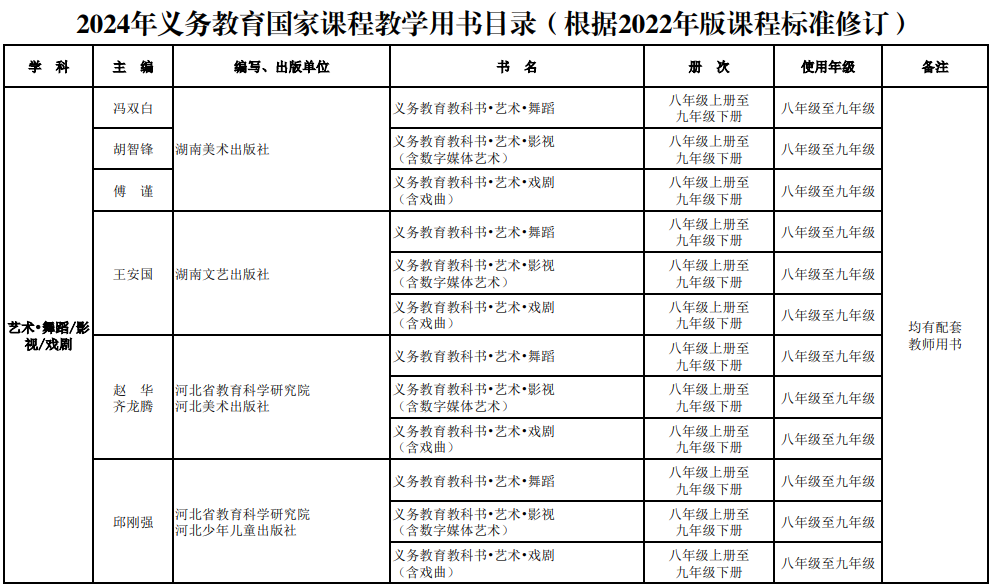 以下是教育部公布的2024年义务教育国家课程教学用书目录(根据2022年版课程标准修订)
