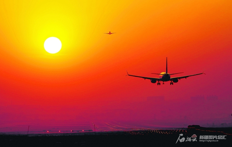 8月6日傍晚,两架民航客机在乌鲁木齐地窝堡国际机场交错起降。今年上半年,乌鲁木齐地窝堡国际机场累计进出境旅客19.4881万人次,同比增长235%;进出境航班2600架次,同比增长181.7%。石榴云/新疆日报记者 蔡增乐摄
