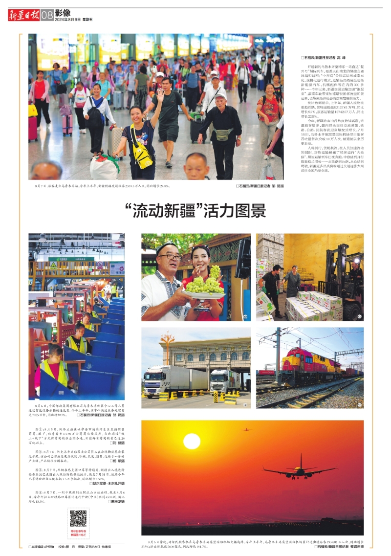 人畅其行,货畅其流。在人员加速流动的同时,货物运输畅通了经济运行“大动脉”。煤炭运输列车日夜奔跑、中欧班列开行数量稳步增长……从铁路到公路,从仓储到跨境,新疆更多品类货物通过交通这张大网送往全国乃至全球。
