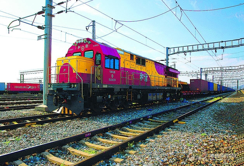 8月7日,一列中欧班列从阿拉山口站启程。截至8月6日,今年阿拉山口铁路口岸累计通行中欧(中亚)班列4590列,同比增长13.3%。宋玉龙摄