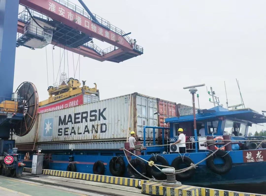 今年上半年,上港(淮安)公司与马士基航运公司达成战略合作协议,将淮安港作为发展长三角北部物流通道的重要一环,推出了淮安—上海全程单驳船物流方案,为淮安市及其周边外贸进出口企业开设了一条高效便捷的物流新通道,实现了内河支线与远洋干线的有机联通。外贸企业的货物只需在淮安港签发全程提单,就可以发往世界各地,这不仅减少了货物转运过程中的时间和手续,提高内河通道时效性,还进一步拓展了业务范围和服务能力,加快推进淮安打造全国性内河航运中心步伐。