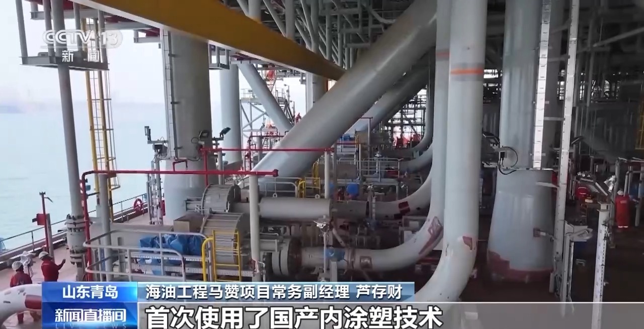 海油工程马赞项目常务副经理 芦存财:我们现在看到的是36寸原油外输管线,首次使用了国产内涂塑技术,解决硫化氢高的同时,实现了25年的长期安全服役。