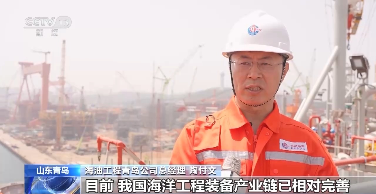 海油工程青岛公司总经理 陶付文:目前,我国海洋工程装备产业链已相对完善,涵盖了上游的装备设计、原材料供应以及中游的装备制造,和下游的项目总包和服务等各个环节。