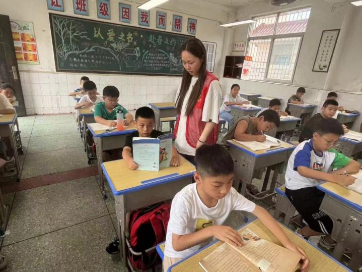 在竹泓镇暑托班上,“五老”代表季宗传结合自己的亲身经历,讲述奋斗的故事,表达对学生的殷切期望和美好祝愿。质朴的话语让团委志愿者徐梦雅热泪盈眶。她表示,身为大学生不能虚度光阴、荒废学业,而应首先树立正确的人生观、价值观、是非观,要意识到自己的幸福生活是无数先辈以鲜血和汗水换来的,要勇于承担自己的责任与使命,以点滴时间充实自我、丰盈人生,真正践行好“强国有我”。