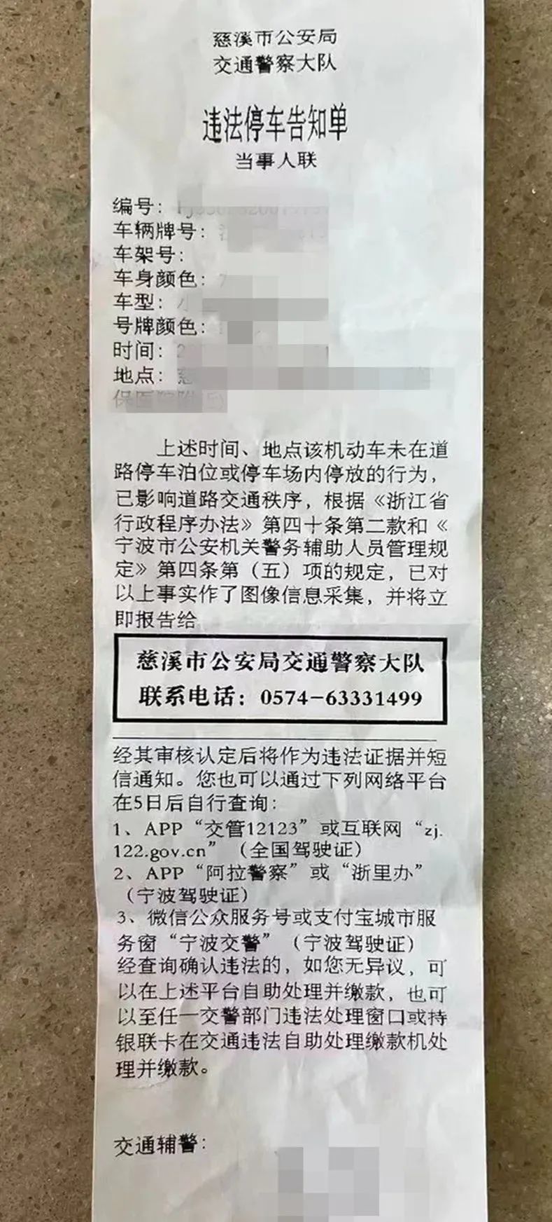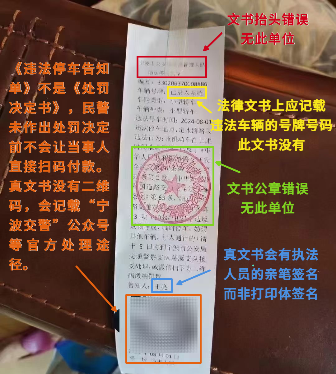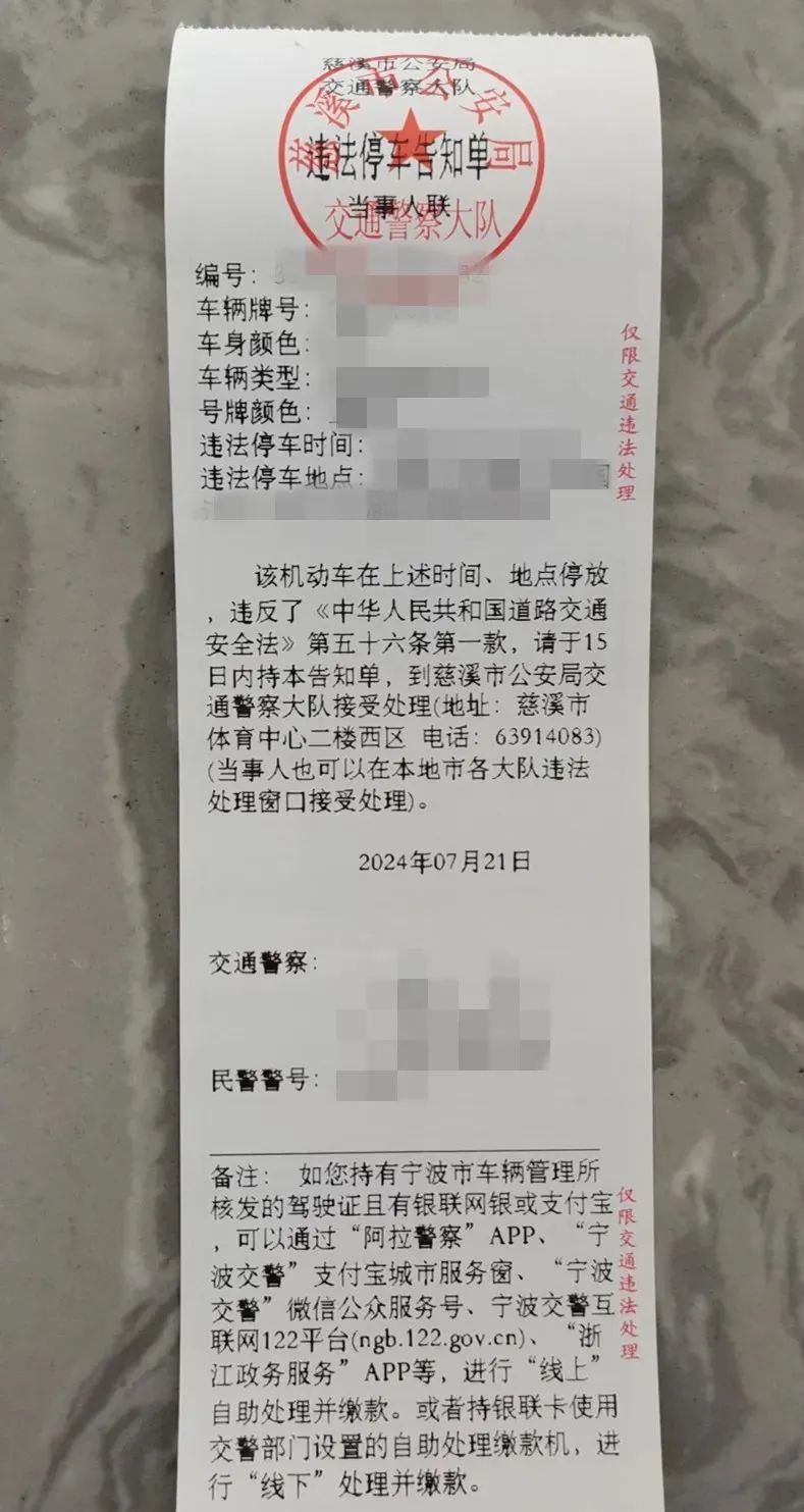 宁波慈溪惊现山寨“违停告知单”