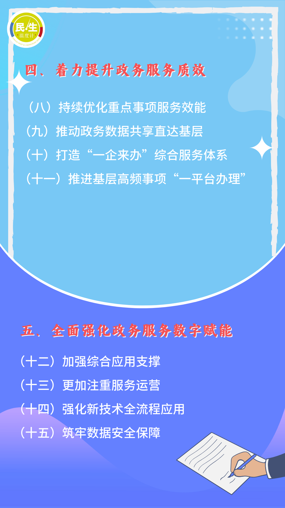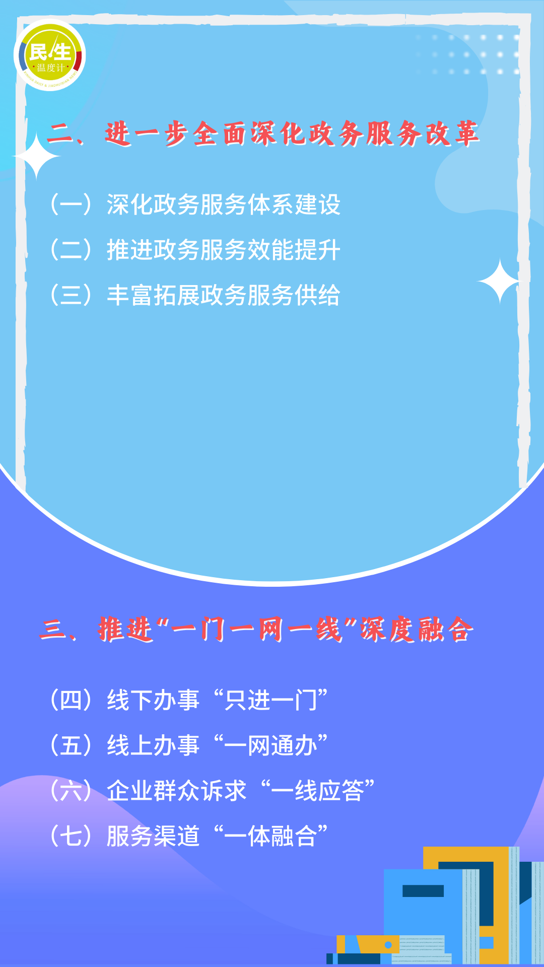 《实施意见》共分7个部分,提出了20条工作部署要求。在总体目标任务上,提出坚持问题导向和目标导向,从企业和群众视角出发,推动“高效办成一件事”,最大限度利企便民,在政务服务改革创新上走在前、做示范。