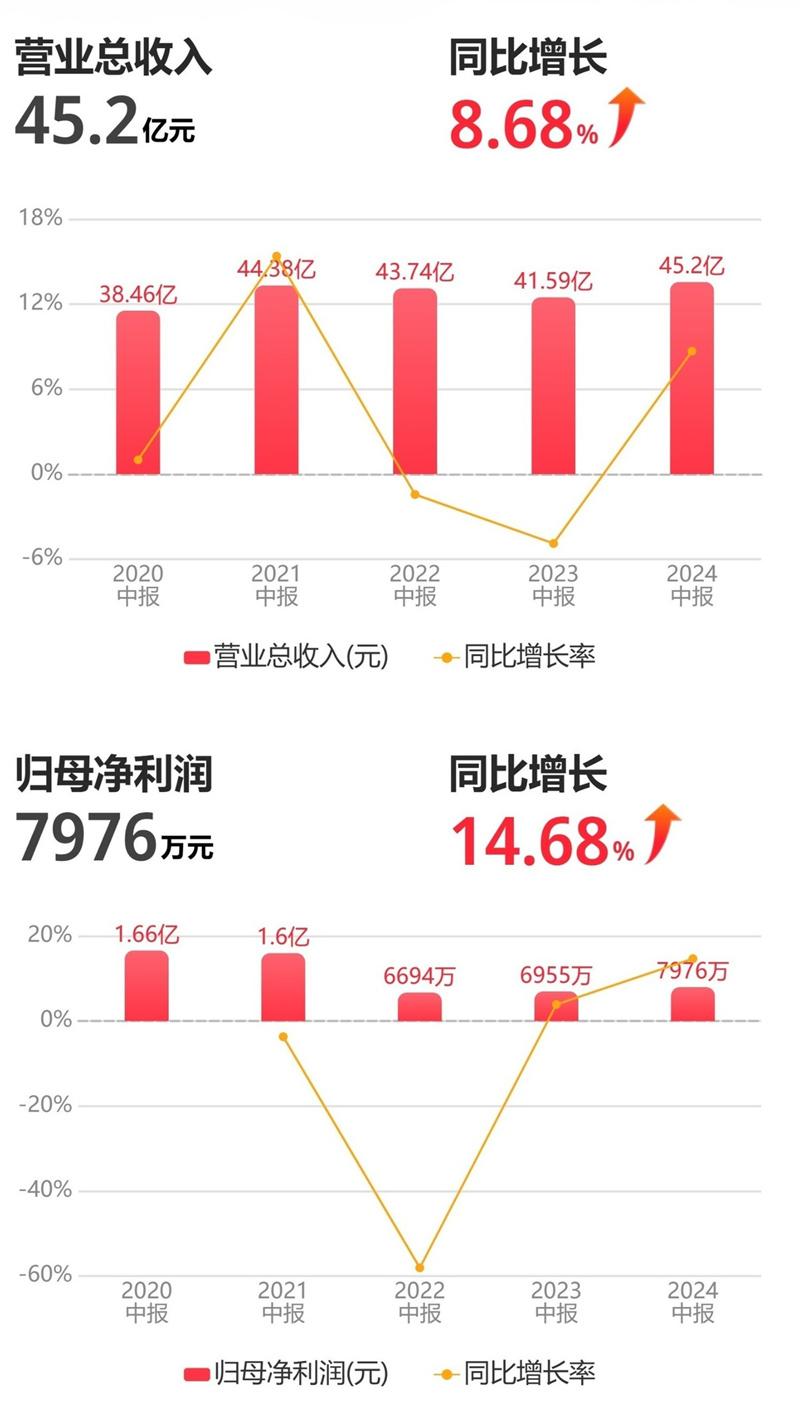 新华日报财经讯 8月16日,孩子王(证券代码:301078)发布2024半年度业绩报告,报告期内公司经营业绩稳步提升,实现营业收入45.20亿元,同比增长8.68%;实现归母净利润7975.95万元,同比增长14.68%。