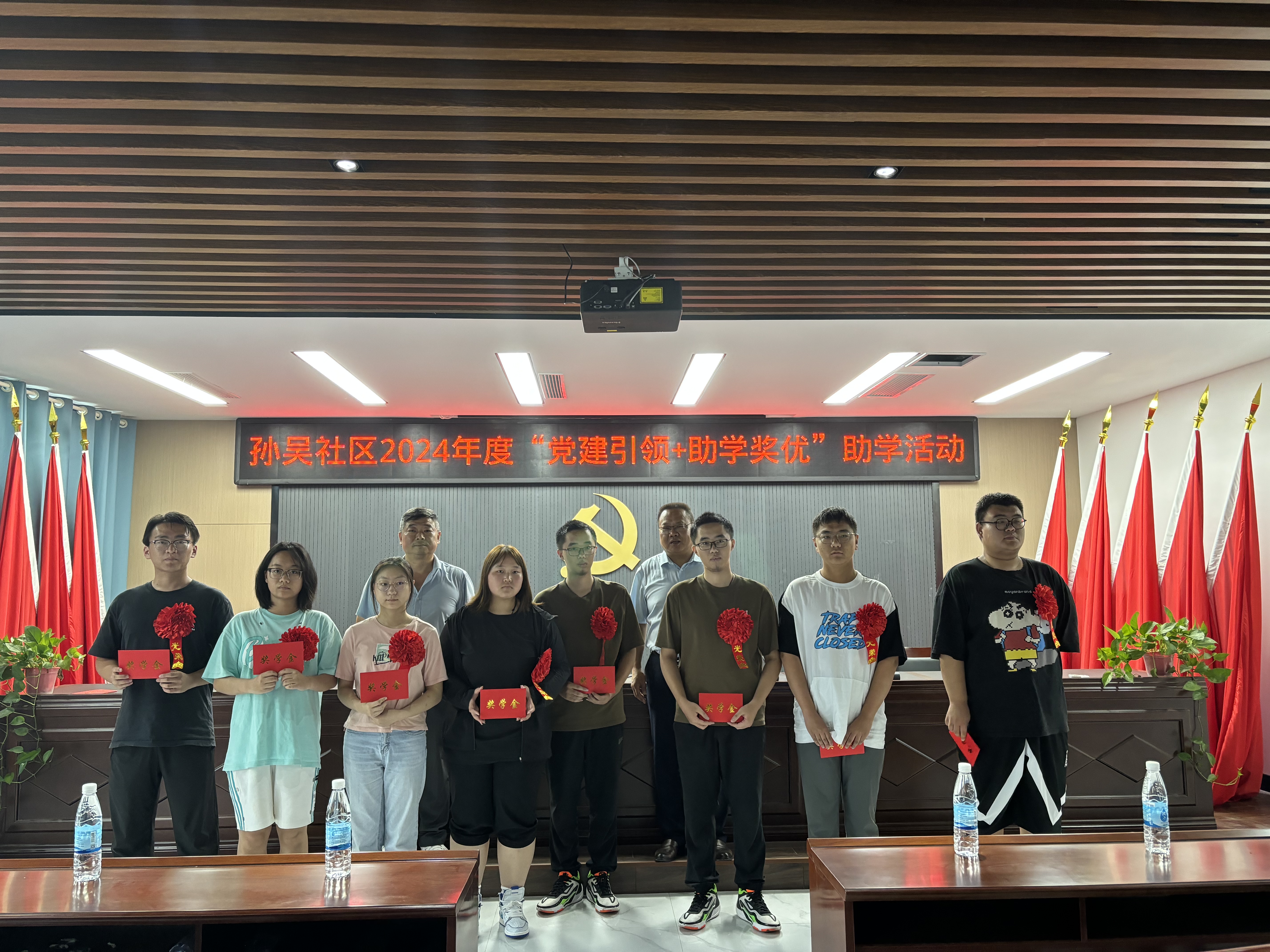新华报业网讯 8月16日,盐城市盐都区盐龙街道孙吴社区在优秀学子们奔赴新校就学之际,开展“党建引领 助学奖优”颁发活动,向今年顺利考上大学的10名学生发放奖学金,以此激励孙吴户籍的学子们坚持不懈勤奋学习,勇于追求梦想。