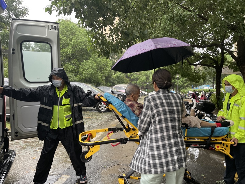 12:43,窗外已是电闪雷鸣,大雨滂沱。宗毅振亚再次接到急救任务,有群众因雨天路滑,骑电动车摔伤,需紧急救治,放下电话宗毅振亚立即带领急救小组登车出发。