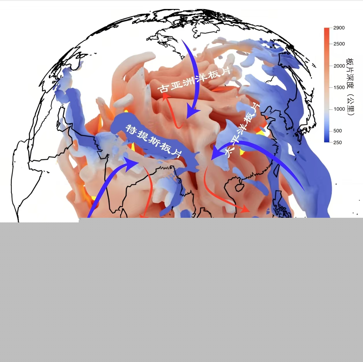 该项目研究团队进一步分析指出,前期俯冲的新特提斯洋板片和伊邪那岐—太平洋板片在沉入下地幔的过程中,对上地幔造成巨大横向压强变化,并在青藏高原下方形成一个低压中心,压强变化驱动着青藏高原周围的上地幔从远到近的汇聚,进而形成“地幔风”。