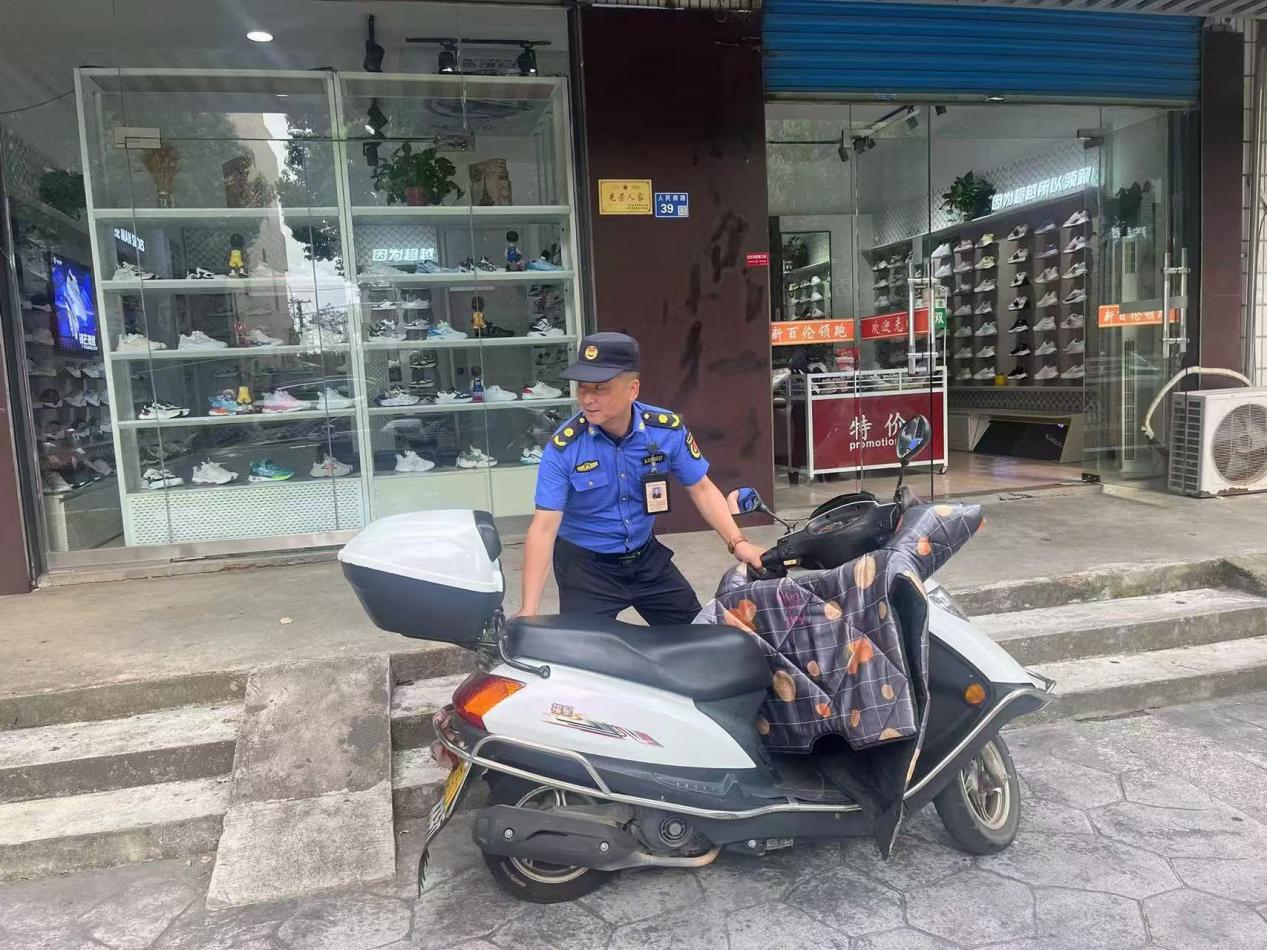 与此同时,街道执法队员坚持严格规范执法,主动帮助商户将店外货物搬移至店内,一一清理店外堆放。针对商铺门前非机动车违停现象,执法队员对现场发现的违停车主采取法规教育、政策宣传、文明劝离的方式进行“有温度”式执法,对乱停乱放的非机动车进行集中整理,统一规范摆放,并要求店主履行日常监督责任,对进店消费顾客非机动车违规停放行为进行劝导,共同创造良好的市容秩序。
