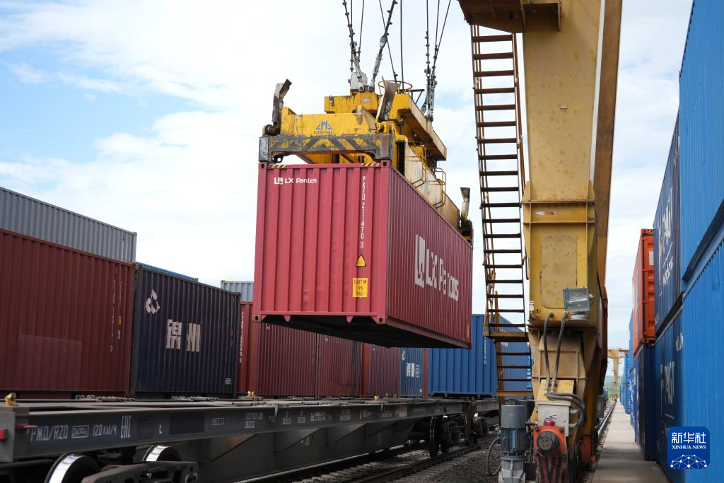 8月6日,中国铁路哈尔滨局集团有限公司内蒙古满洲里站货运车间在对回程中欧班列进行卸车作业。新华社发(黄旭摄)