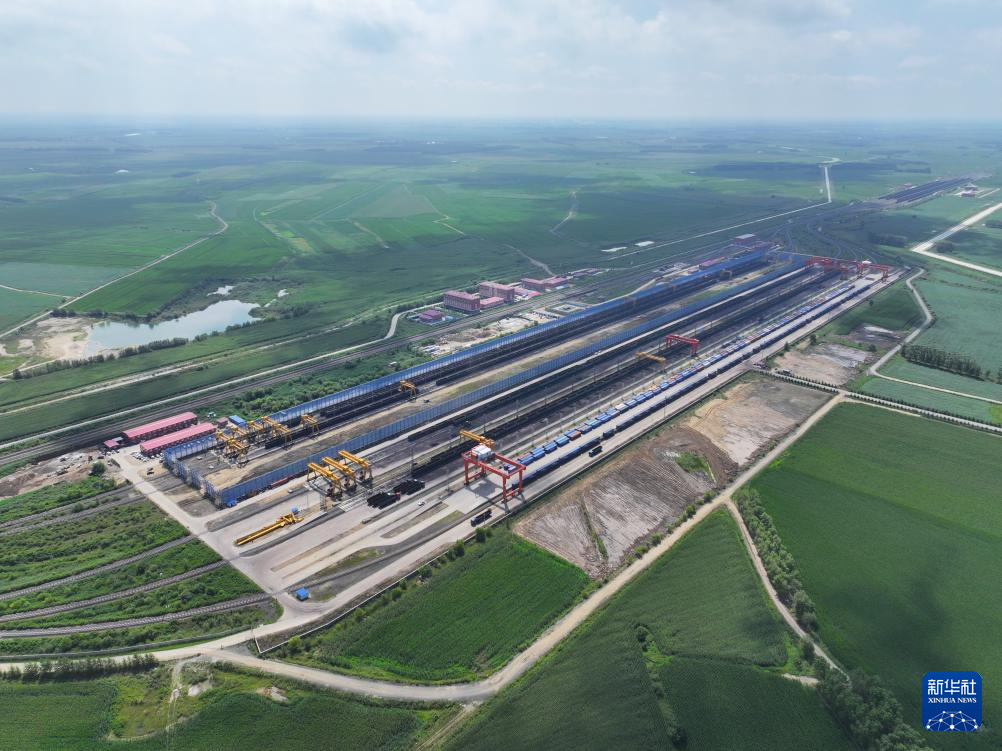 7月29日拍摄的黑龙江绥芬河站北场全貌(无人机照片)。新华社发(曲艺伟 摄)