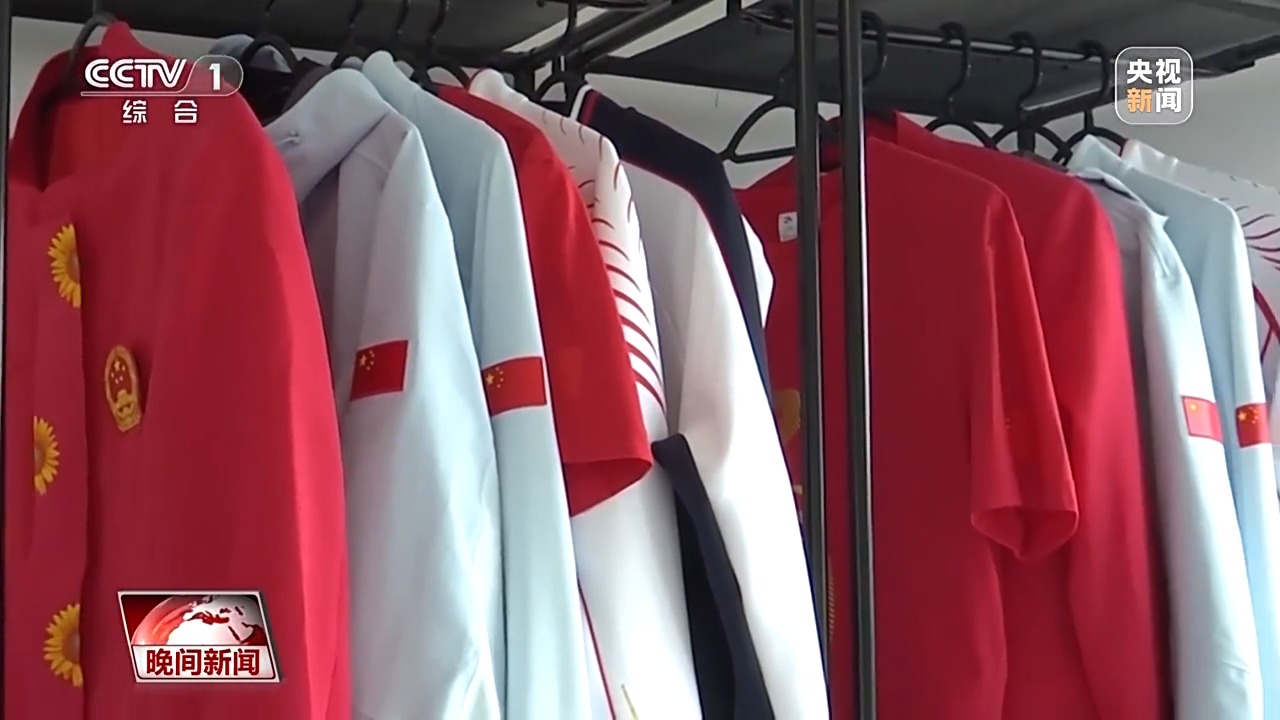 巴黎残奥会中国体育代表团田径队领跑员 游俊杰:这套是我们的领奖服。当残疾人运动员获得奖牌的时候,我们就可以自豪地穿上这套站在领奖台上。这上面有一些很细致的手工,凤凰的图案,还有一套可能就是平常比较休闲穿的,上面的图形也寓意着凤凰。