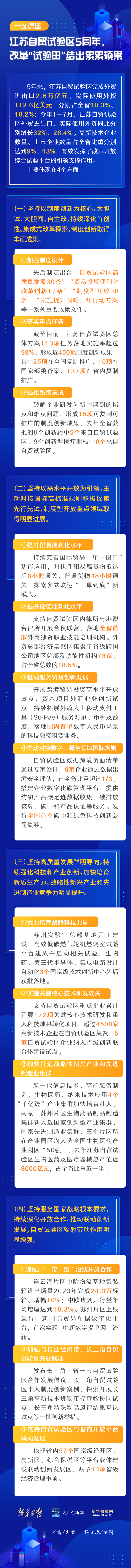 五年前,中国(江苏)自由贸易试验区获批设立。五年来,江苏自贸试验区围绕打造开放型经济发展先行区、实体经济创新发展和产业转型升级示范区,形成了一批制度创新经验成果。8月30日,江苏召开新闻发布会,介绍江苏自贸试验区的五年“成绩单”,一图了解↓