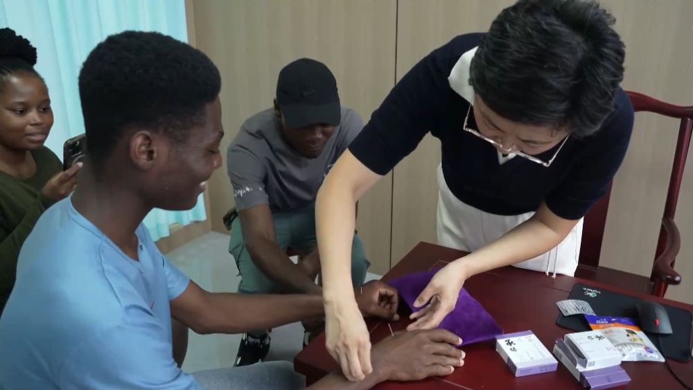 他喜欢中文说唱歌曲,喜欢和同学们一起逛博物馆、吃美食。他还喜欢中医,特别是针灸,每到周末他还会和同学们一起寻找中医老师,请教中医知识。他希望能把中医带回家,帮助更多的人。问他为啥喜欢说“中”,因为他热爱中国这片土地。