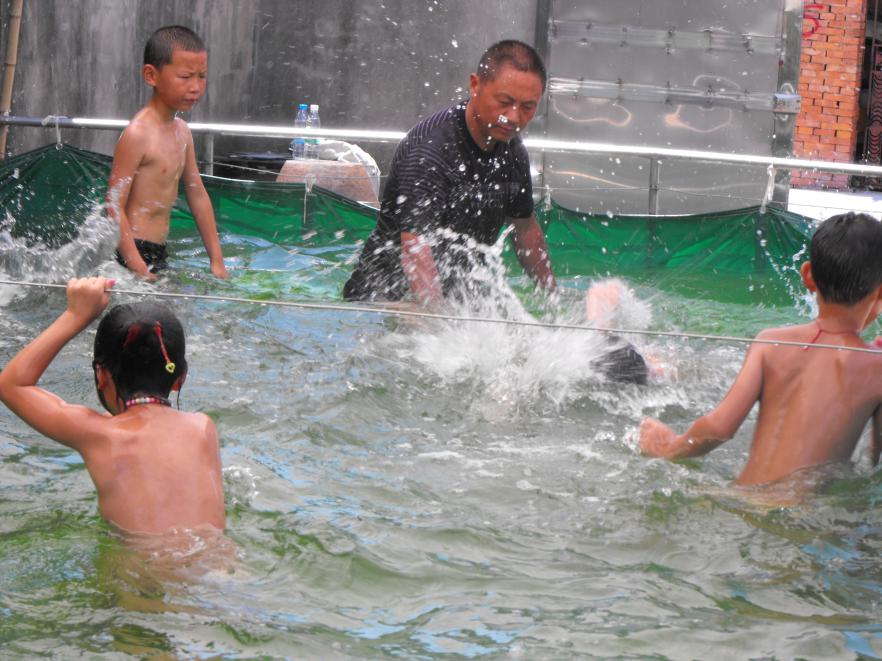 留守儿童吴培某暑假期间,在爷爷的陪同下前往文礼道家庭辅导站免费学游泳,花了7天时间学会了仰泳、蛙泳。今年暑期,有位家长送孩子来学游泳,学会之后欲按市场价付费3000元,文礼道还是那句口头禅:要收(费)就不要来!人家说:“老文啊,水、电都得算成本,你一分钱不收,(我们)怎过意得去!”无奈,象征性地收下了一点点。文礼道望着一个个经他手把手教会游泳的孩子,尽管高温日晒,晒黑了脸皮,像个黑炭,但他心甘情愿,无怨无悔。