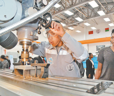 4月26日,在马达加斯加首都塔那那利佛,塔那那利佛大学理工学院学生在鲁班工坊操作设备。西塔卡·拉乔纳里松摄(新华社发)