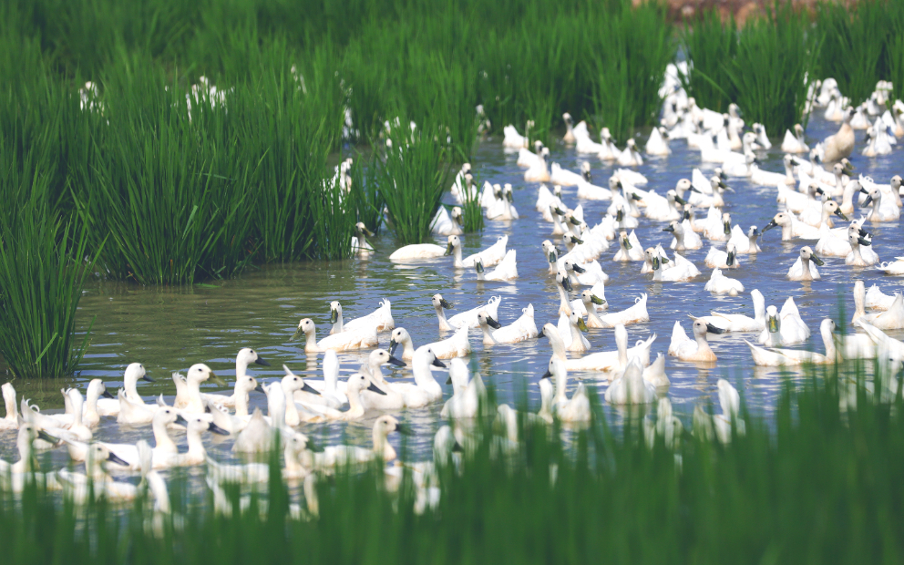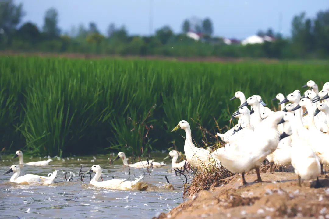 以田养鸭,以鸭促稻,“稻鸭共养”养出了“生态鸭”,还种出了“生态米”,既节约了生产成本,又实现了生态效益和经济效益双赢。