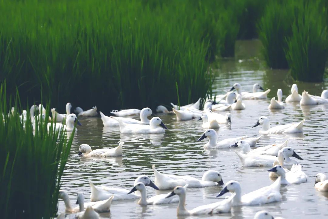 (记者 汪晓昊 通讯员 永萱)成片绿意的稻田,一垄垄水稻长势喜人,三五成群的小鸭子在水稻间游弋嬉戏、觅食戏水,好一派和谐共生、充满自然生机的景象。