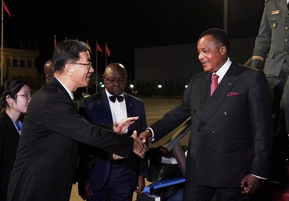 9月2日,刚果(布)总统萨苏抵达北京,出席中非合作论坛北京峰会。新华社记者张晨霖 摄