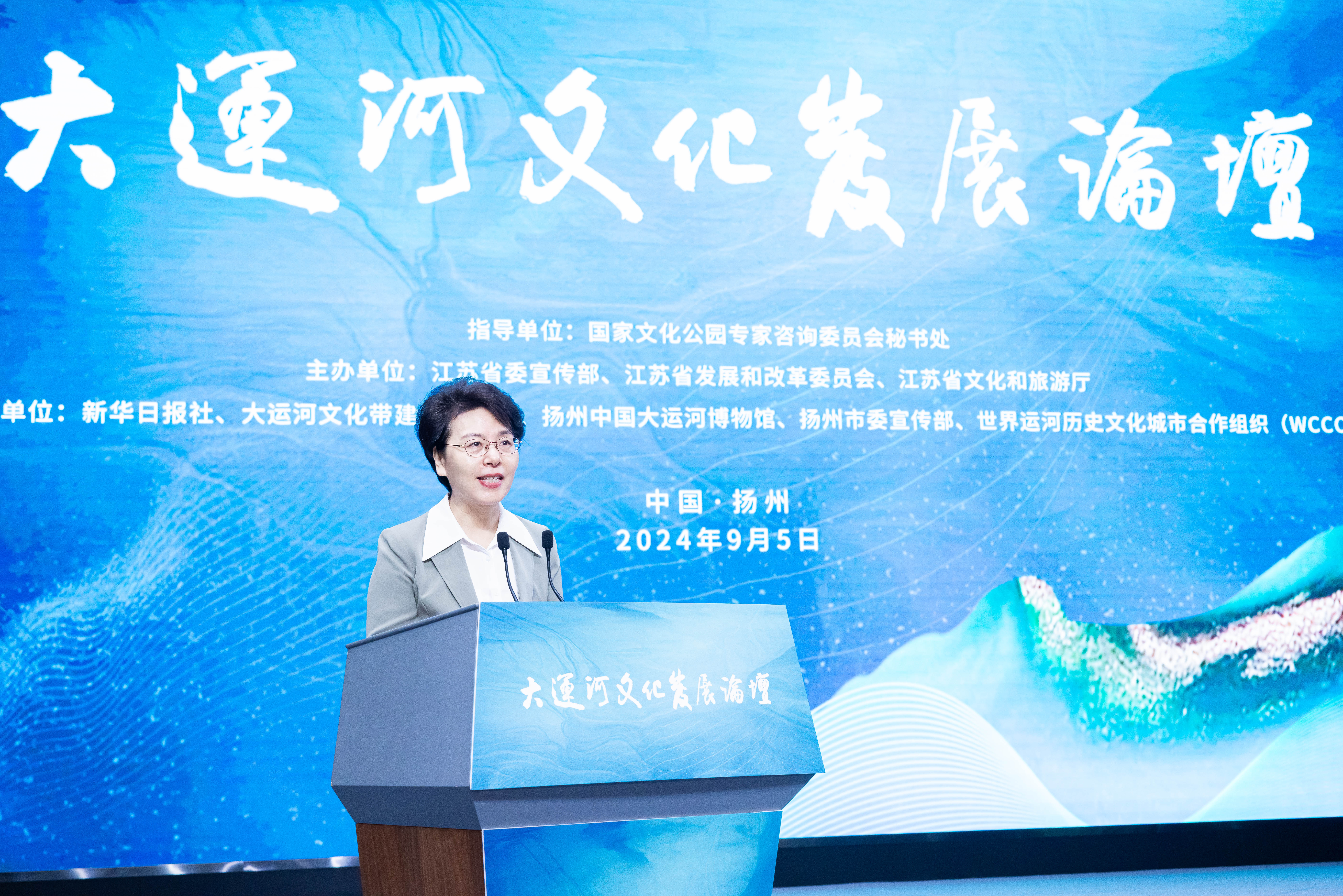 交汇点讯 今年是中国大运河申遗成功十周年。9月5日,由国家文化公园专家咨询委员会秘书处指导,省委宣传部、省发展和改革委员会、省文化和旅游厅主办的大运河文化发展论坛在扬州举行,来自全国各地的嘉宾齐聚一堂,共谋大运河文化的新时代发展蓝图。省委常委、省委宣传部部长徐缨出席主论坛并致辞。