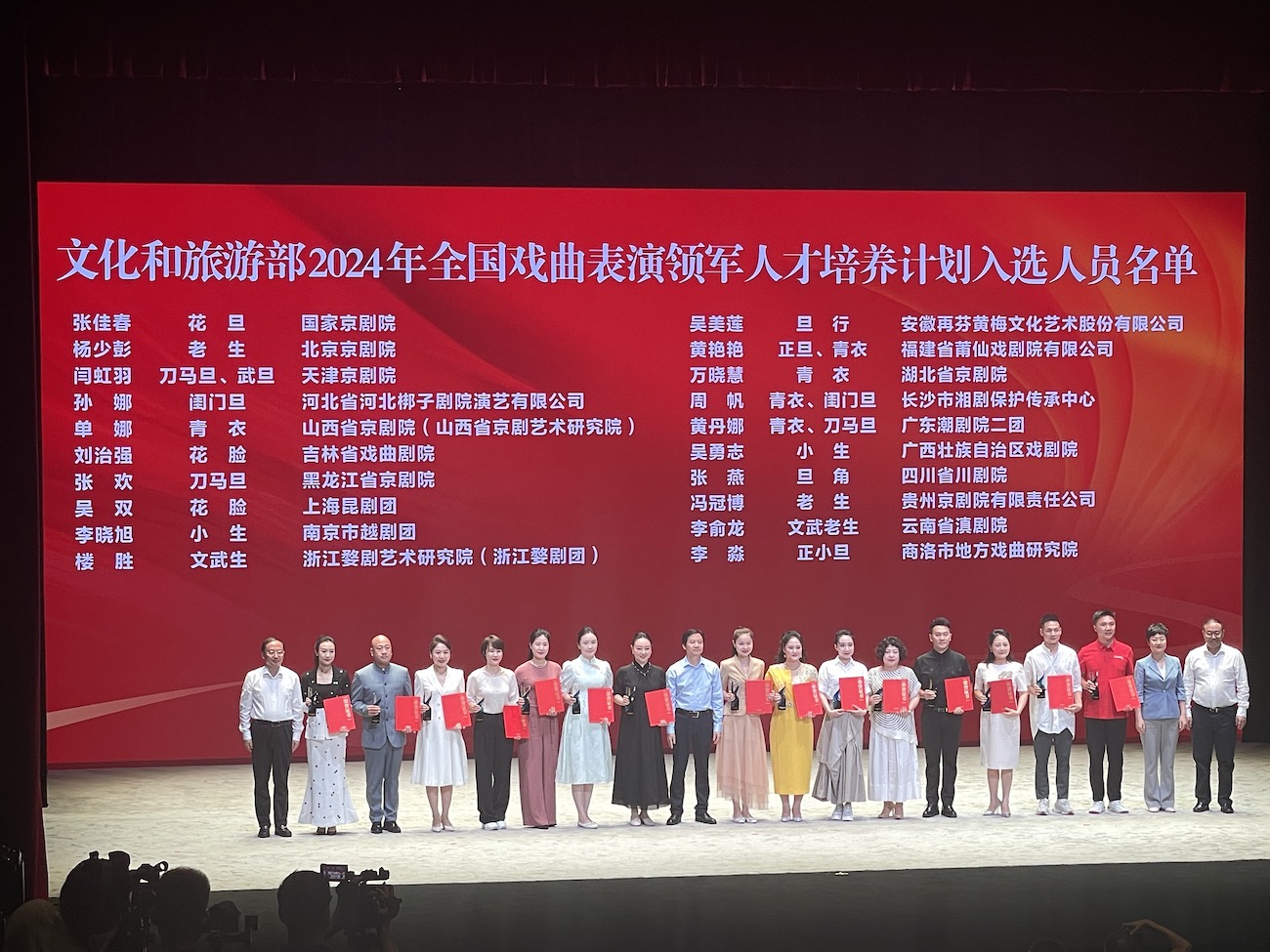 开幕式上,为15位2024年文化和旅游部全国戏曲表演领军人才培养计划入选人员代表颁发证书。