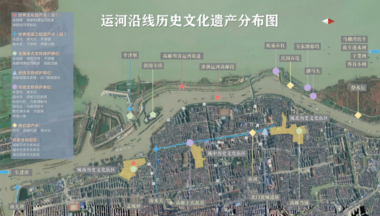 大运河高邮段全长43.6公里,作为中国大运河的黄金段,大运河高邮段历史遗存丰富,文物古迹众多。“高邮明清运河故道现有世界文化遗产点3处、国家重点文保单位6处、省市级文保单位10余处。”在姜师立看来,这些历史文化资源就像是散落在大运河沿线的一颗颗珍珠,散发着千年中华文明和辉煌历史的璀璨之光。