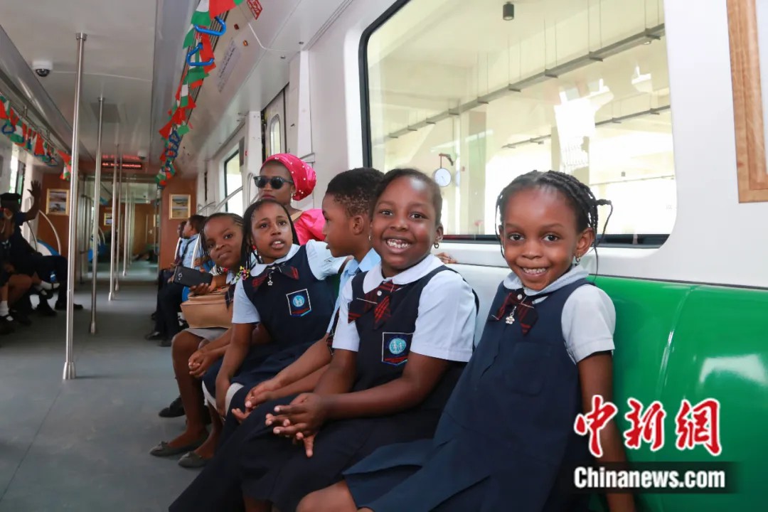 中国铁建中土尼日利亚公司承建的尼日利亚阿布贾城铁成功交付使用。图为乘坐城铁出行的尼日利亚小学生。王曦 摄