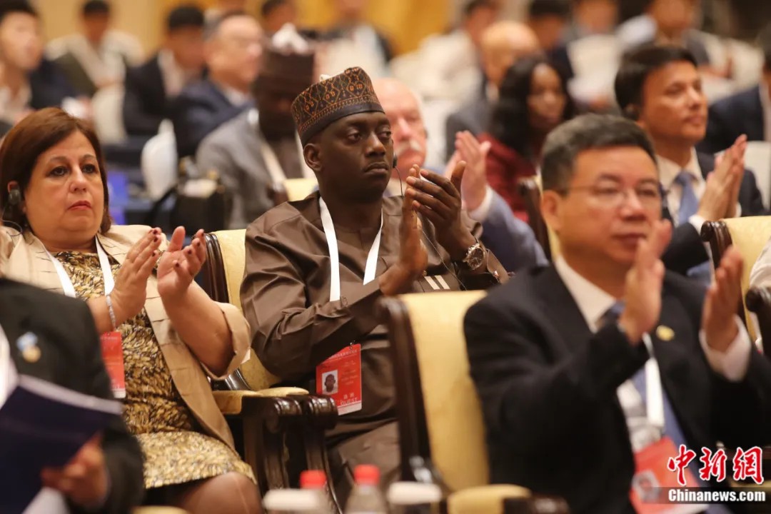 9月3日,尼日利亚联邦众议院尼中关系委员会主席贾法鲁·雅库布(左二)出席2024年国际议员友好交流论坛开幕式。中新社记者 张亨伟 摄