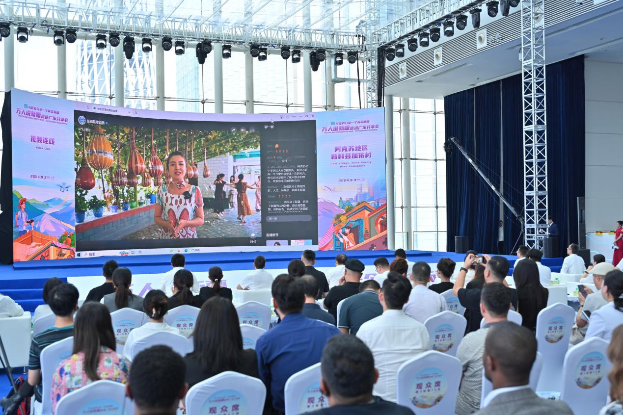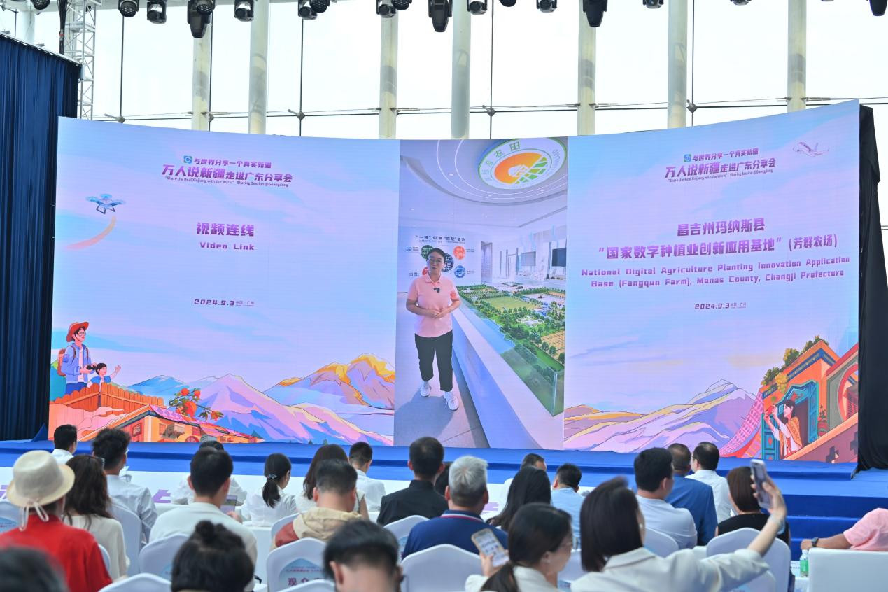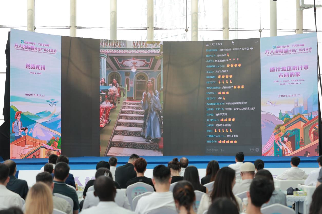 9月3日,“万人说新疆”走进广东分享会在广州市举办。在此次活动中,新粤两地首次开启实时视频连线,阿克苏地区新和县、昌吉州玛纳斯县、喀什地区喀什市的三名主播通过网络直播,在千里之外向观众和广大网友讲述民族手工乐器制作技艺传承的故事,展现新疆文旅融合繁荣发展,反映新疆现代化智慧农业的发展成就。