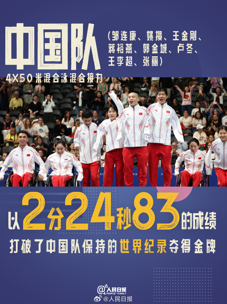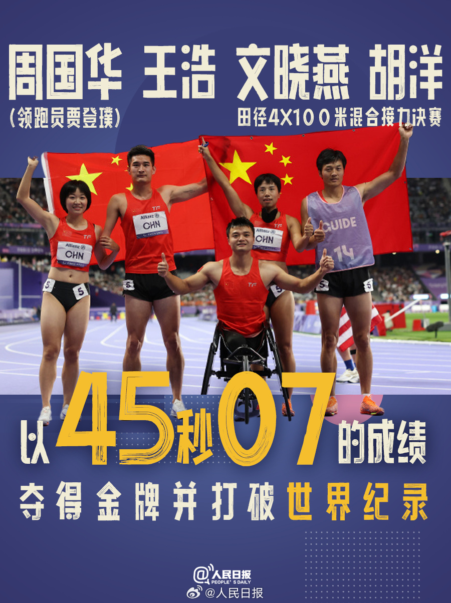 1分09秒68、6.85米、3分41秒692、123公斤……这些数字,都是中国队在残奥赛场上打破的世界纪录。巴黎残奥还有1天闭幕,中国队好样的,为你们骄傲!
