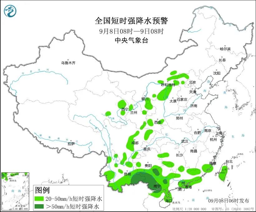 中央气象台9月8日06时继续发布强对流天气蓝色预警: