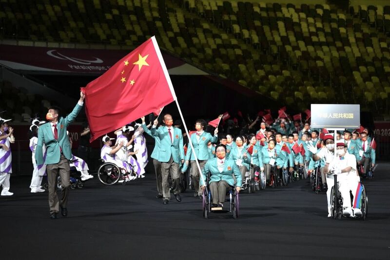 时间来到2021年,王浩和周佳敏作为中国代表团的旗手亮相东京残奥会开幕式。26岁的王浩走在队伍最前列,来自辽宁的他浓眉大眼,是典型的东北帅哥,高擎五星红旗,眉宇间意气风发。