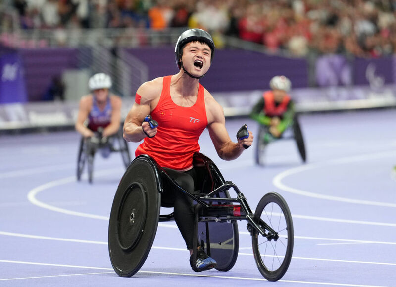 在这个团队里,胡洋算是新人,他在东京残奥会之后才开始和其他几人组队。这也只是他第二次参加残奥会,在上届赛事里,他的最好成绩是男子100米T54级第六名。来到巴黎,胡洋已经参加了三项角逐,还没有站上过领奖台,眼前100米的直道,是他最后的希望。