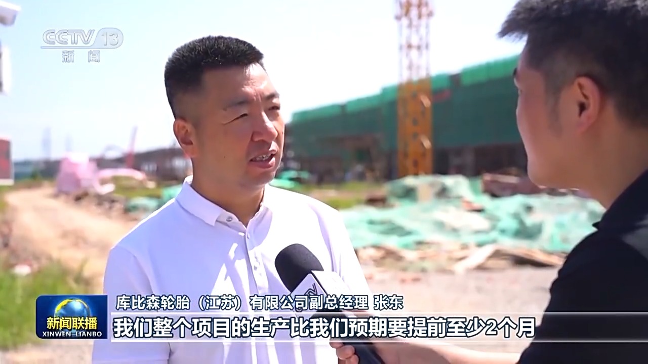 库比森轮胎(江苏)有限公司副总经理 张东:我们整个项目的生产比我们预期要提前至少2个月。因为今年整个汽车市场,包括新能源汽车市场是非常之好,所以说时间对于我们来说也非常宝贵。