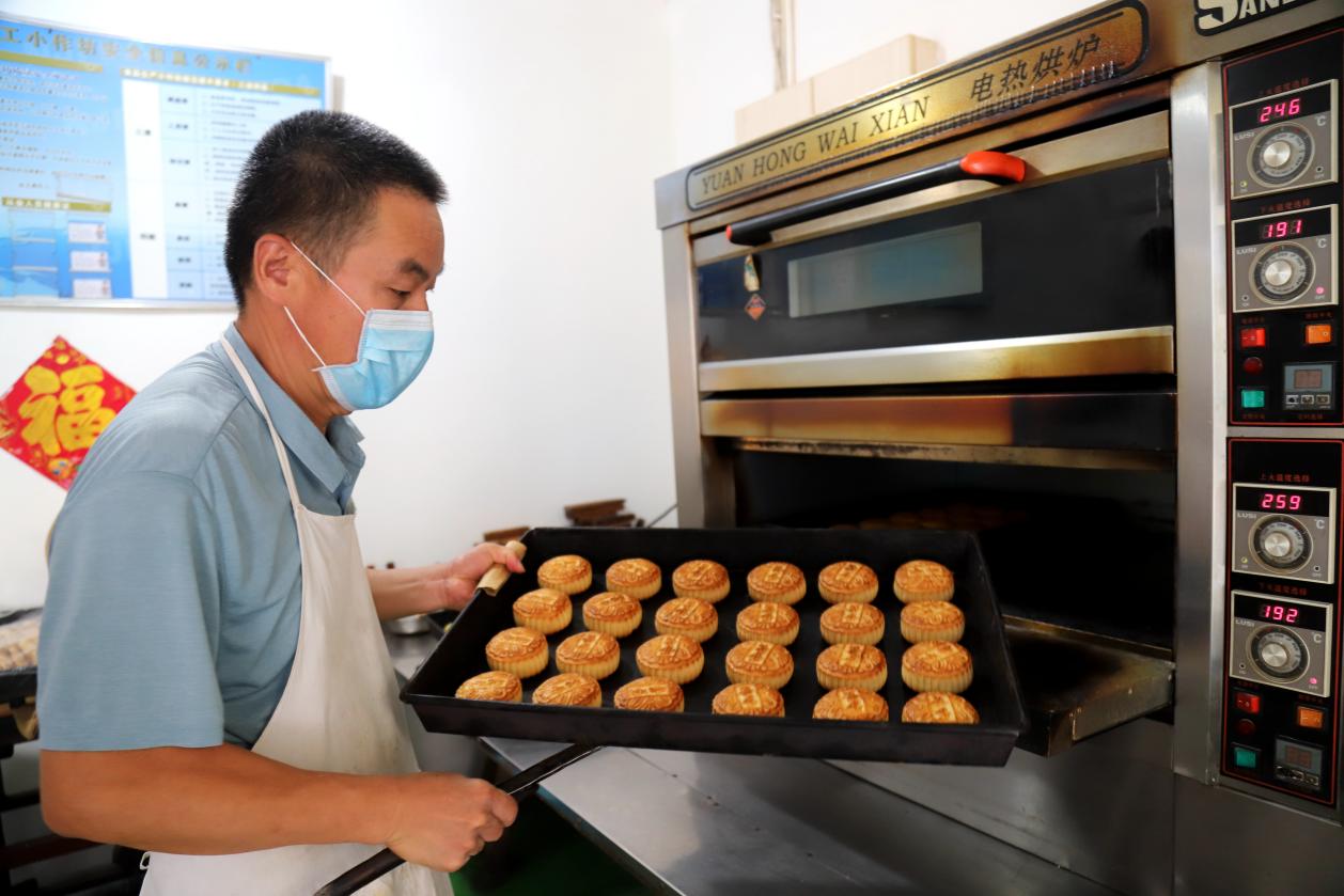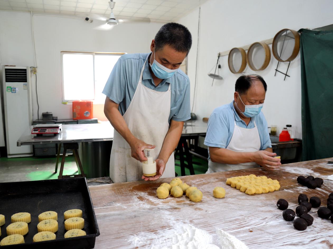 9月10日,在高淳区桠溪街道桠溪集镇兄弟食品厂内,工人们正在制作广式月饼准备销售市场。