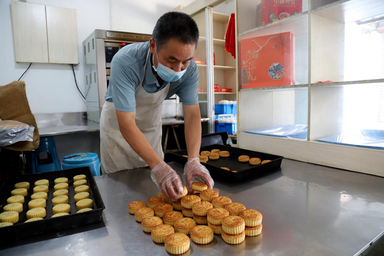 据悉,随着中秋节即将来临,为让顾客品尝到传统的手工制作月饼,这家食品厂每天加紧手工赶制广式和苏式月饼满足市场供应,日生产量达1000多枚。