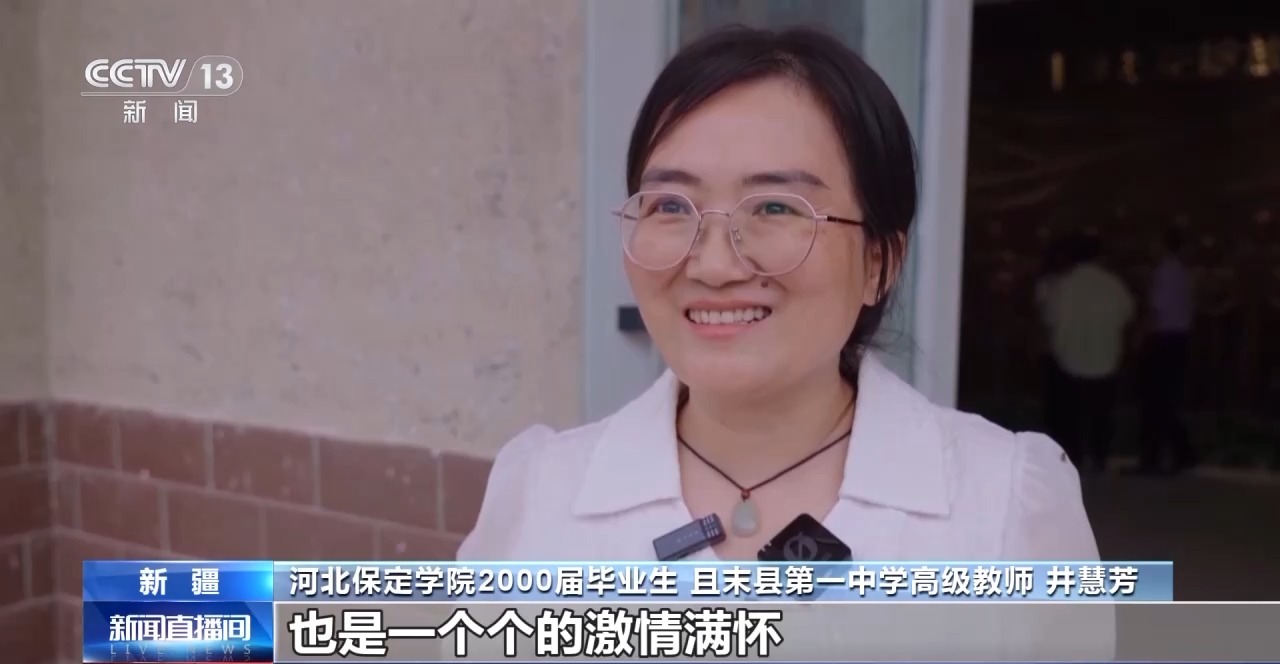 河北保定学院2000届毕业生 且末县第一中学高级教师 井慧芳:我们带过的许多孩子,都能够从这个小小的且末,走出塔克拉玛干大沙漠。还有好多的孩子,还能够回到且末,又投入到家乡的建设当中。