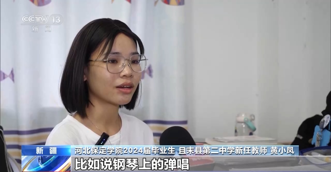 河北保定学院2024届毕业生 且末县第二中学新任教师 黄小凤:准备了一箱专业相关的书,比如说钢琴上的弹唱还有音乐历史的,能够更好地教给当地的孩子。