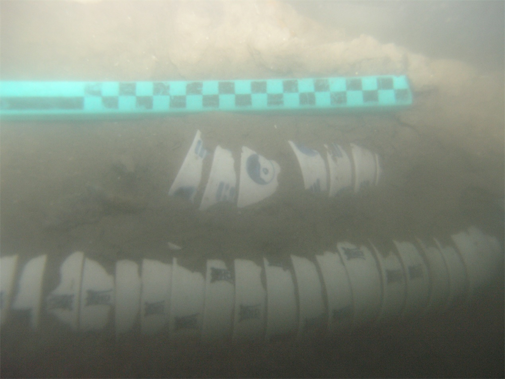 羊泽林:同样是布探方,我们在陆地上,一个人五分钟就可以拉完一个5×5米的探方,但是到了水下,同样的动作两个人一个小时还干不完。因为你要考虑水下的能见度,在下面就跟闭着眼睛做事情一样,基本上靠经验。