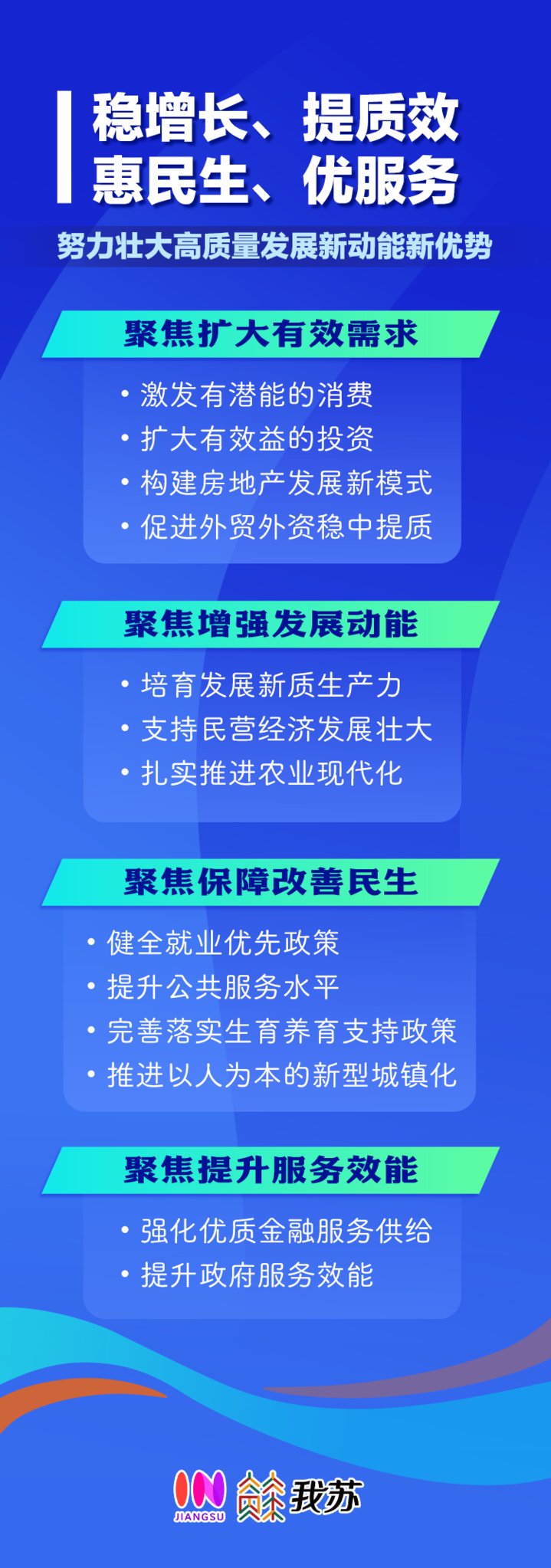 在聚焦扩大有效需求方面,明确提出激发有潜能的消费,扩大有效益的投资、构建房地产发展新模式,促进外贸外资稳中提质四个部分14条政策措施。省发改委主任沈剑荣介绍,14条政策措施具体包括安排1.65亿元支持各地扩大文旅消费服务;多渠道支持居民收入增长,今明两年城乡居民基本养老保险基础养老金省定最低标准都将按照不低于8%的增幅进行调整;积极鼓励“以旧换新”,支持各地因城施策扩大房票购买不动产范围;每年补贴企业参加200场以上境外重点展会,打造智能家电、汽摩配件等30个跨境电商产业带等。
